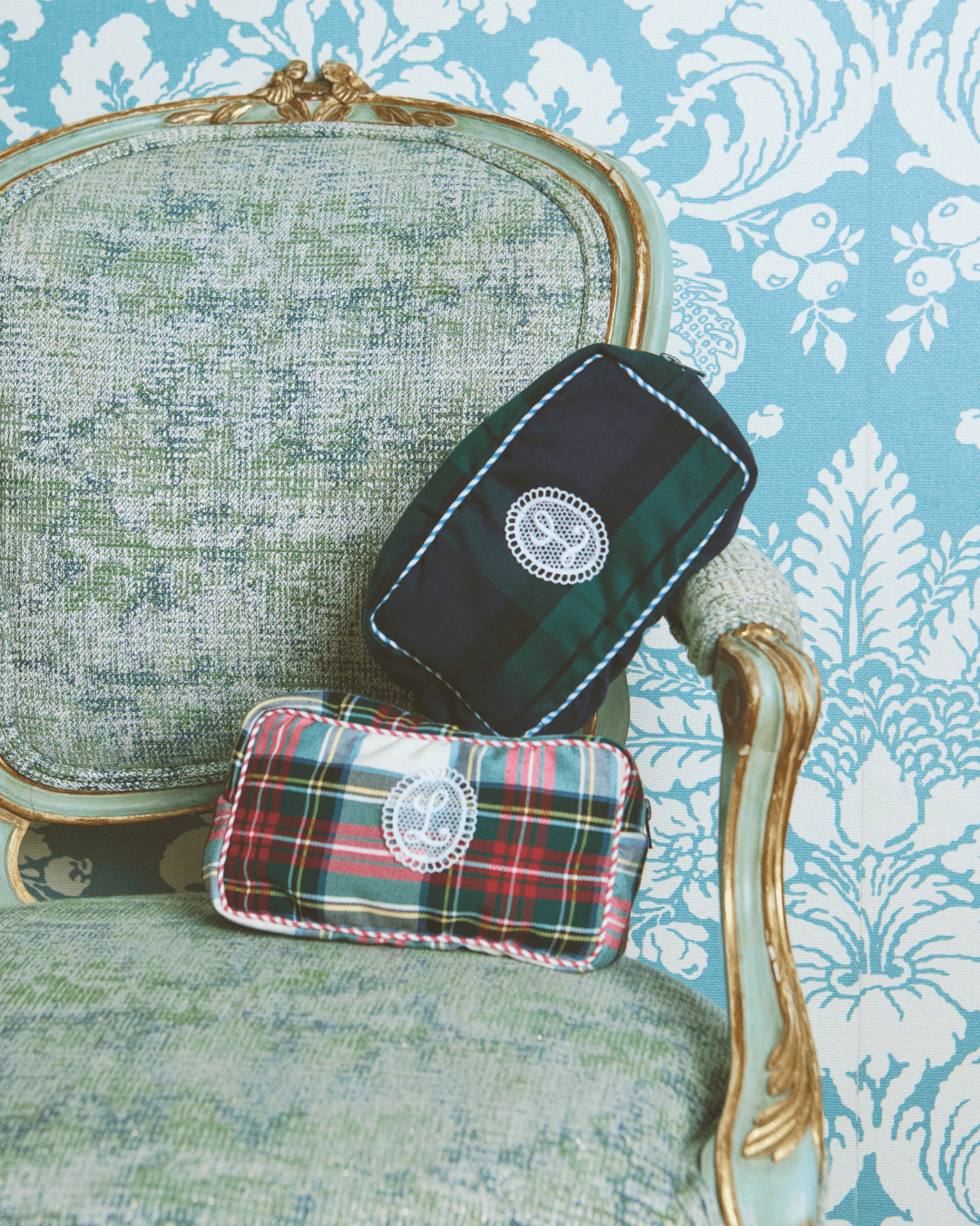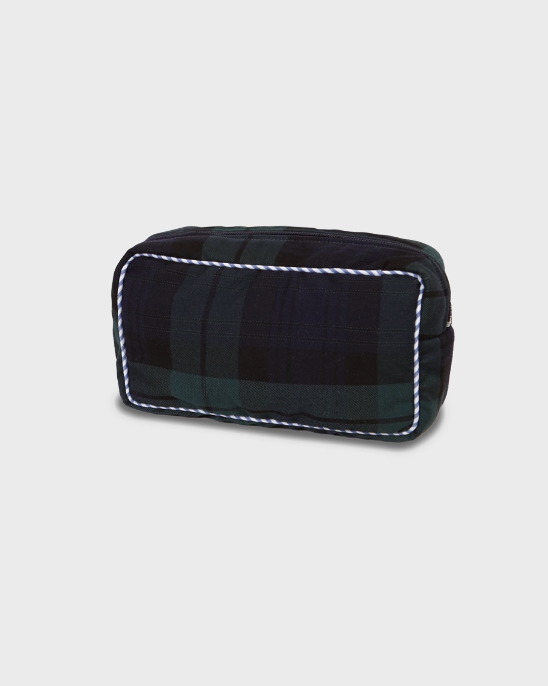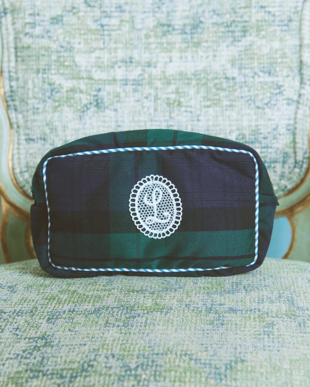 The new Mao Blue Tartan Puch is the perfect accessory for all your trips. Its blue and green tartan print is truly unique and can be paired with its robe and pajamas. This elegant and functional toiletry bag is perfect for storing your essentials. It has a lined interior and contrasting piping and embroidered L on the exterior. Don’t miss out!