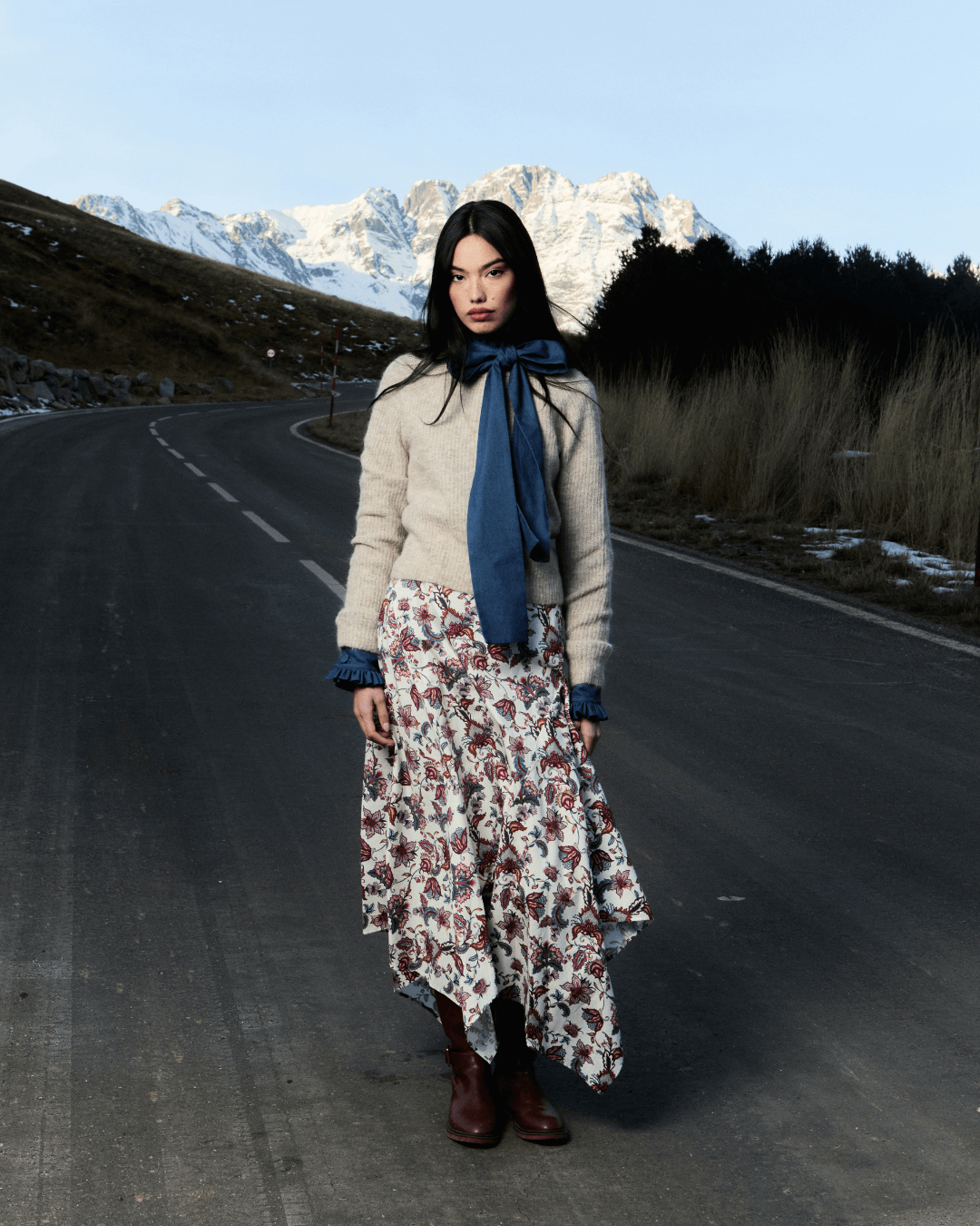 Devon Melaza Beige skirt: A trend accompanied by fluid elegance.