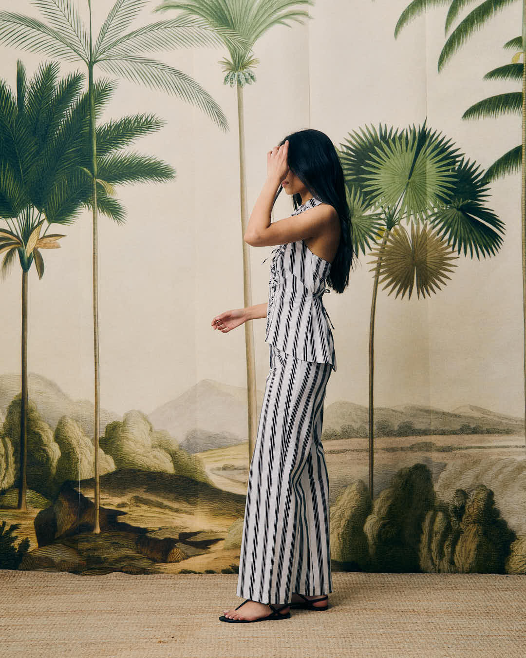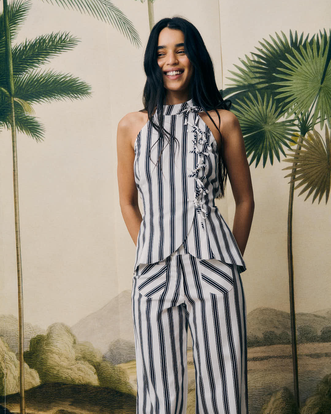 Details that make all the difference: With wide legs, a fitted waist, the finest cotton and linen fabric, and details that make them truly special. They work perfectly as part of a set or on their own. As part of the Night collection, they’ve become one of the most elegant pieces of the season, and it’s easy to see why, but above all, they’ve become the brand’s signature piece. For any occasion and for the most anticipated event of the year, the Punky Night pants won’t go unnoticed thanks to how great they look and their beautiful black-and-white striped print, this season’s number one trend.