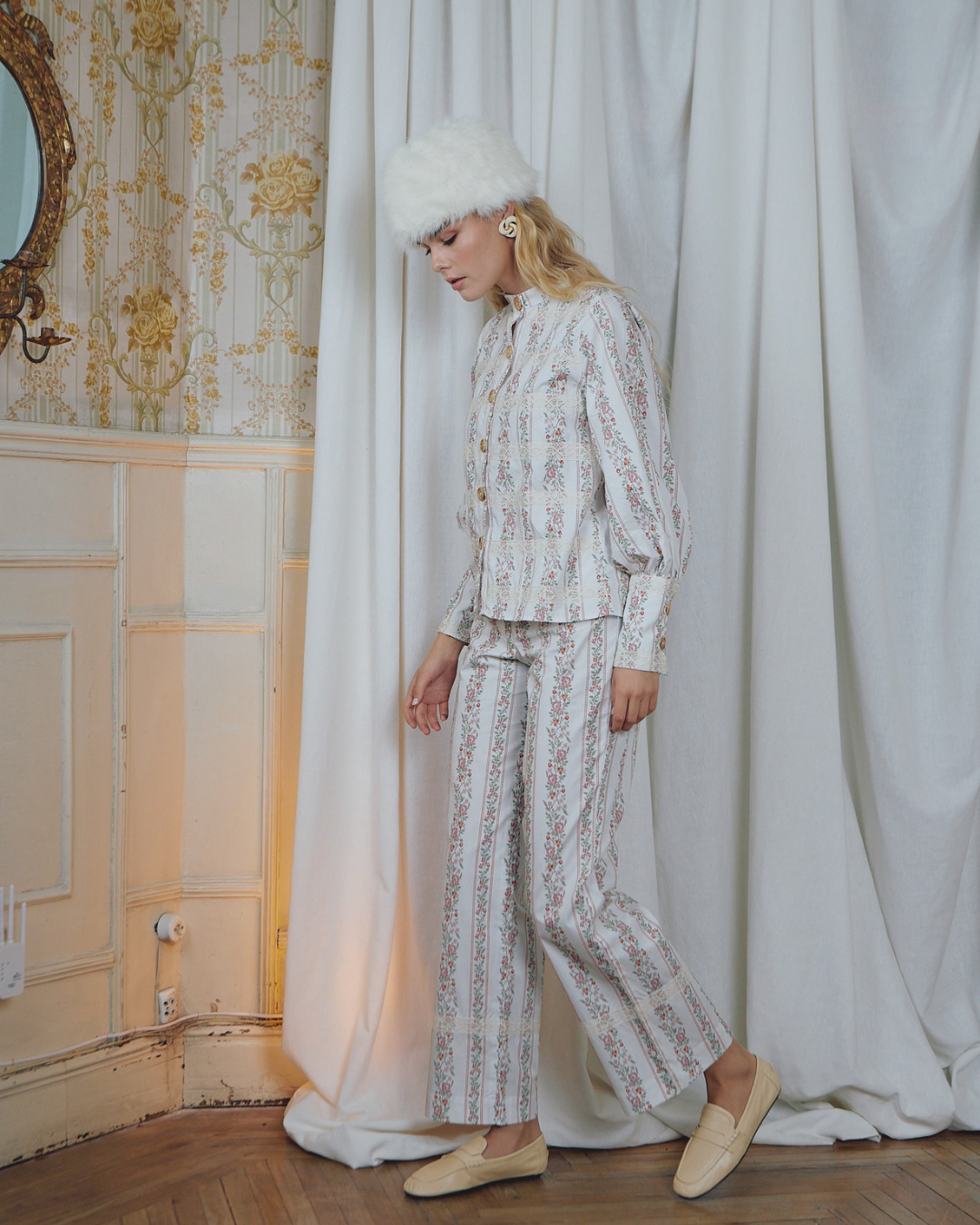 Details that make the difference: With wide legs, a fitted waist, the best cotton fabric, and details such as the ruffles, which make them super special. They work perfectly as a set or separately. As part of the set Toffee, they have become one of the most elegant items of the season, and it’s not hard to see why, but above all, they have become the brand’s emblem. For any occasion and for the most anticipated event of the year, the Punky Toffee pants will not go unnoticed because of how well they fit and their beautiful fabric. This romantic print, which simulates embroidery, stands out for its floral borders in the most beautiful pastel shades on a beige background. In addition, at the bottom of the pants you will find an embroidered bobbin lace ribbon that stands out for its craftsmanship.