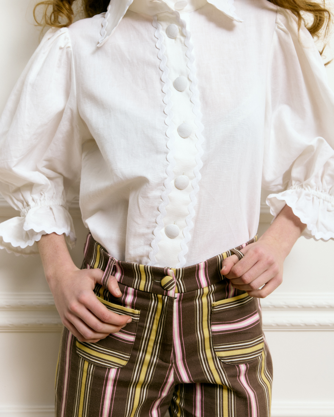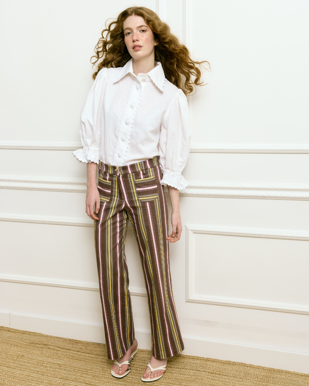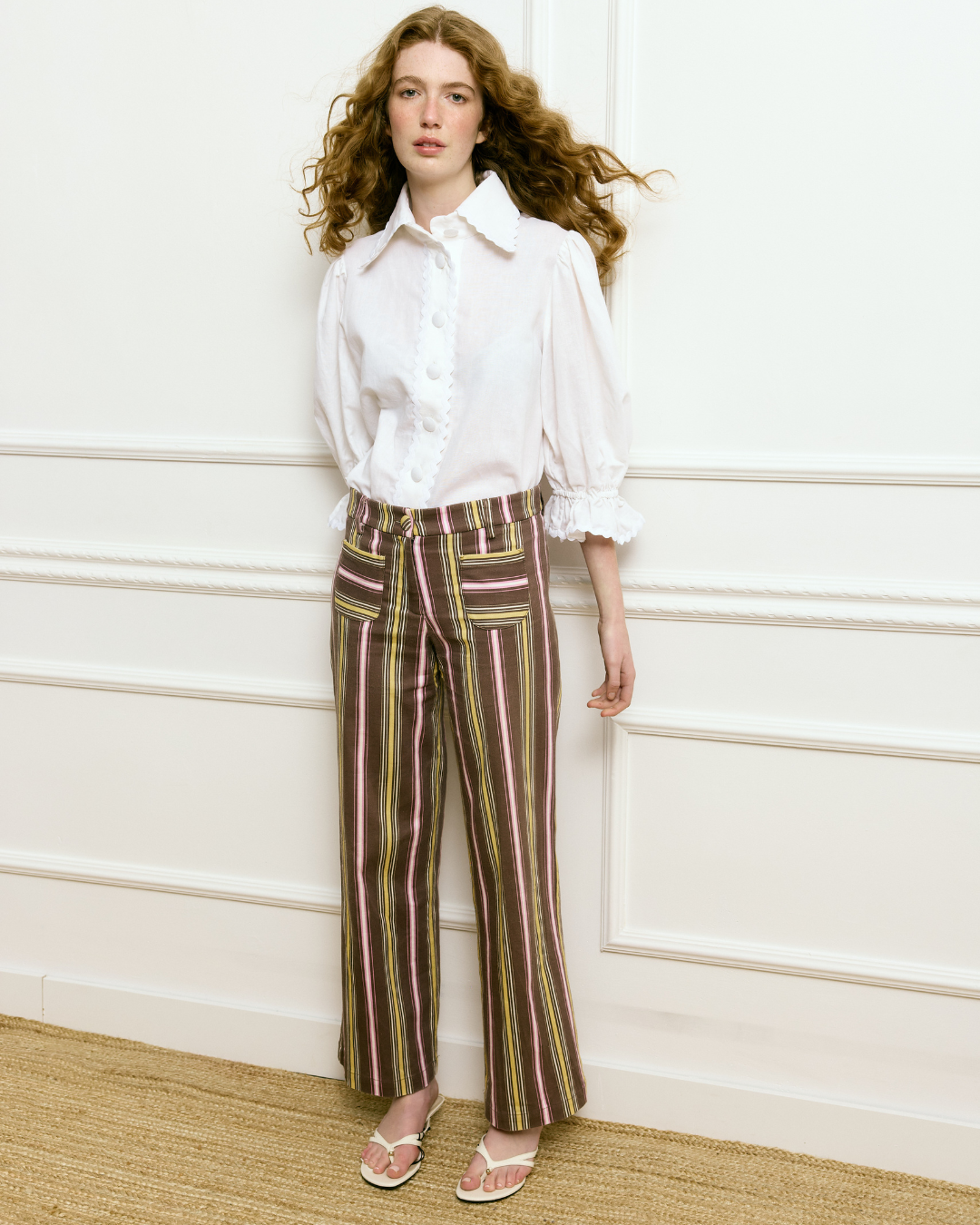 Details that Make the Difference: With wide leg, fitted waist, the best cotton fabric, and details that make it super special. We know you love stripes and this time the combination of brown, yellow, pink and white couldn’t make a better match.