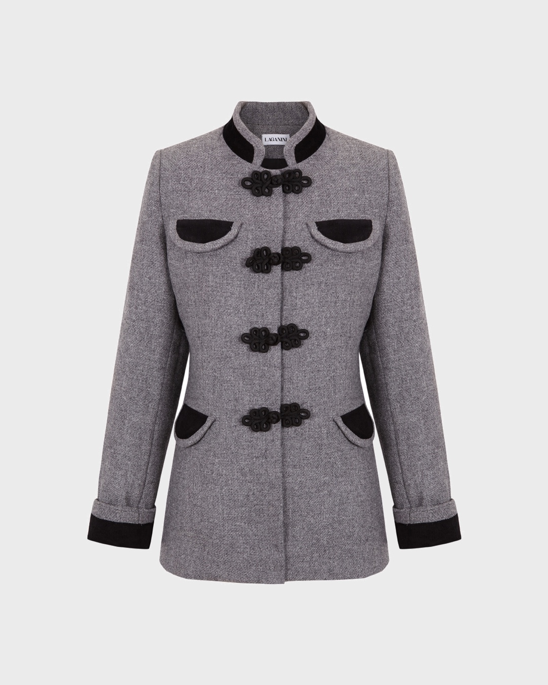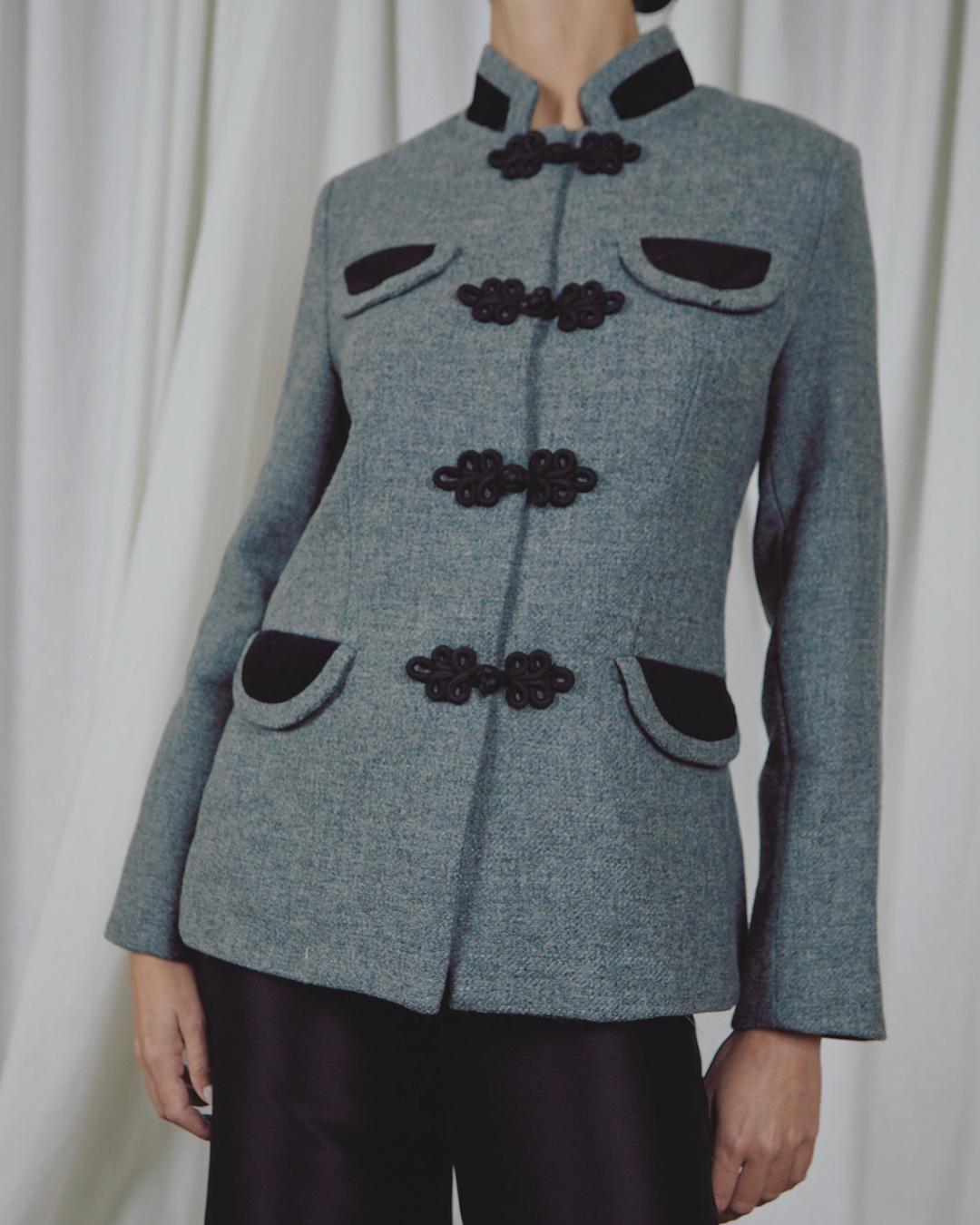 Detalles que Marcan la Diferencia: Esta chaqueta de lana gris viene pisando fuerte para convertirse en el básico de tu armario pero con un toque fresco y sobre todo muy chic. Su diseño destaca por su exquisito patrón recto pensado para ser lo más elegante posible. Los detalles más destacables son las hombreras que aportan estructura, sus alamares importados de la India, su cuello mandarín y sus discretos bolsillos redondeados. Todos estos detalles terminados en pana de color negro. De nuevo, la sastrería de los años 50 sirven de inspiración para el diseño de esta americana.