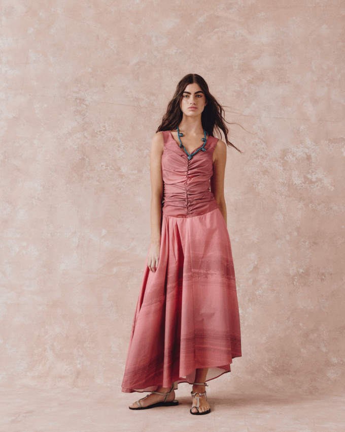 Detalles que Marcan la Diferencia: Su diseño entallado en el torso resalta la silueta mientras que la falda asimétrica aporta dinamismo. Sus tirantes anchos aportan un mayor soporte y comodidad , su cuello con forma en pico sienta bien a todo tipo de morfologías, y su cuerpo drapeado e irregular moldea la silueta y estiliza la cintura, a la vez que disimula el pecho. Su original estampado está diseñado por nosotras mismas, lo que la hace todavía más especial. Se trata de un estampado tie dye en tonos rosas que crea un contraste sofisticado y atemporal, ideal para quienes buscan un look con personalidad. Confeccionado en un algodón de la mejor calidad, ligero y fluido, este vestido garantiza comodidad y frescura en cada uso.