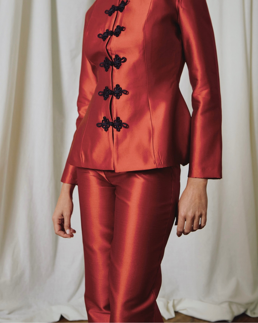 Detalles que marcan la diferencia: Como parte del conjunto Shanghai se ha convertido en la revelación de la temporada: Su diseño exclusivo, tejido satinado y una exquisita mezcla de seda, un corte minuciosamente diseñado para realzar tu figura lo han convertido en el emblema de nuestra marca. Esta temporada vuelve en un rojo precioso que va a marcar la diferencia.