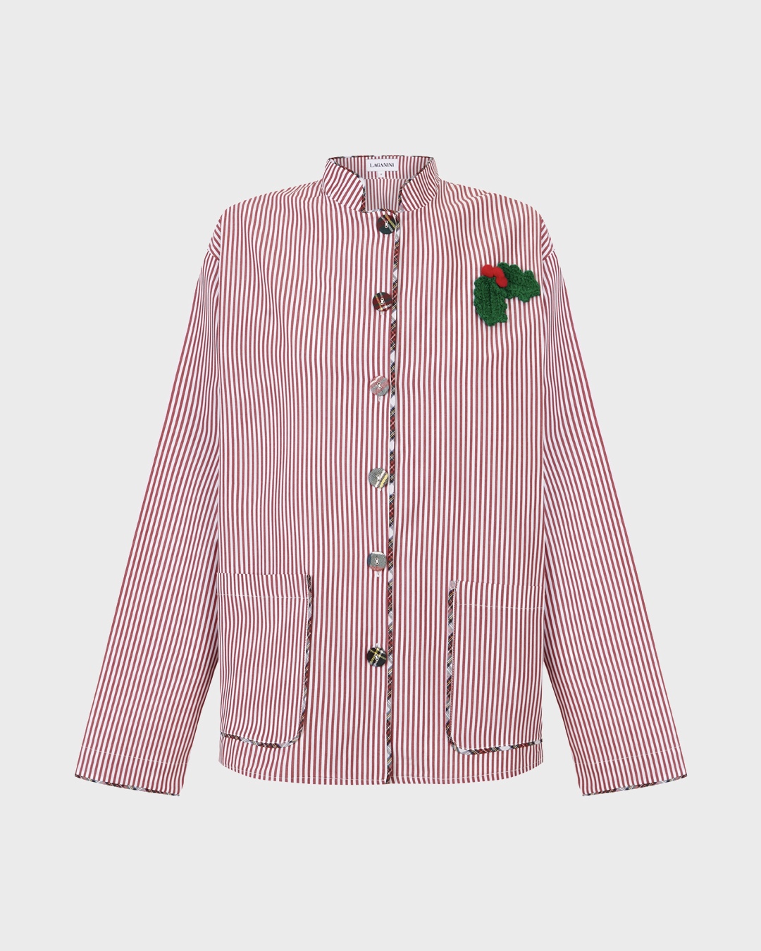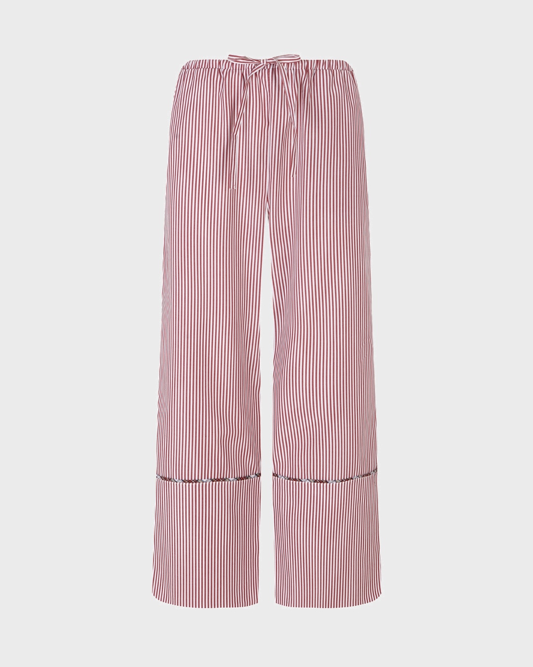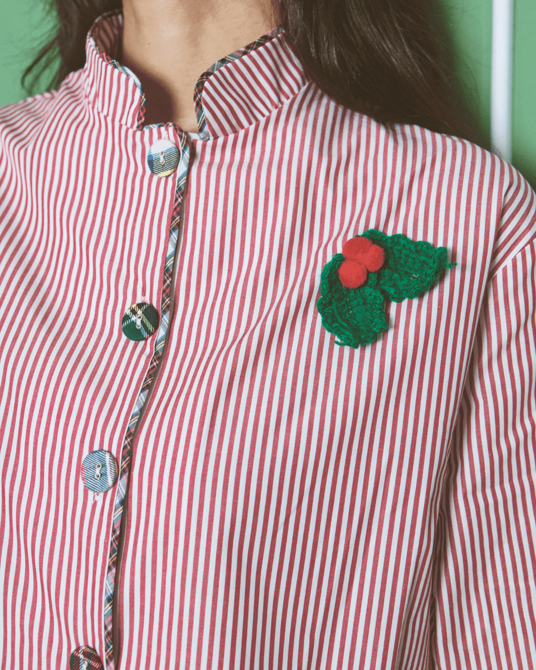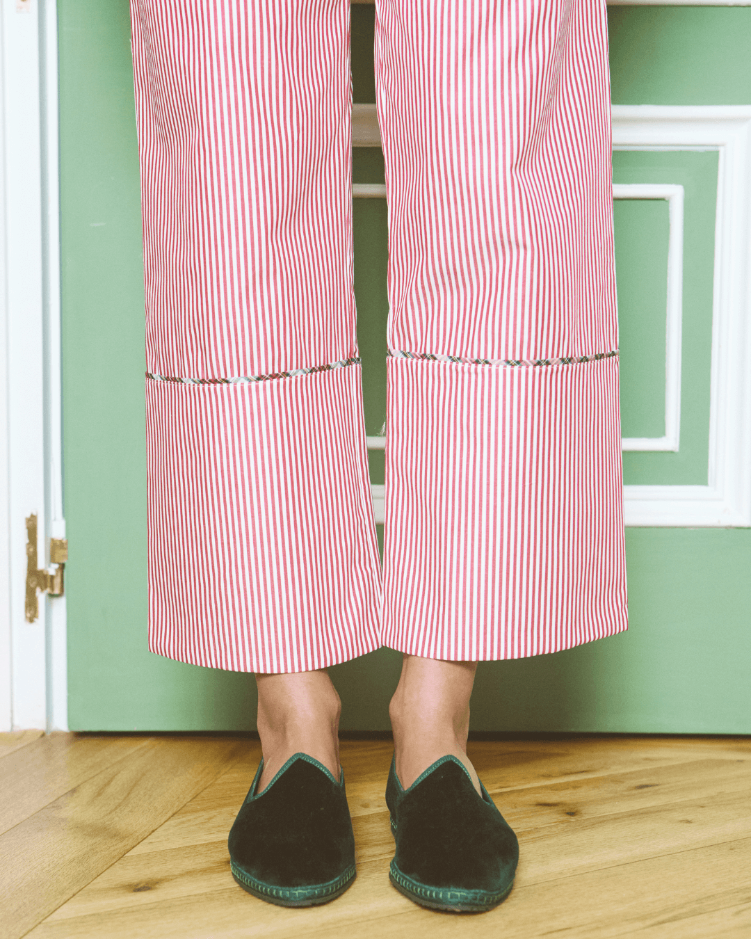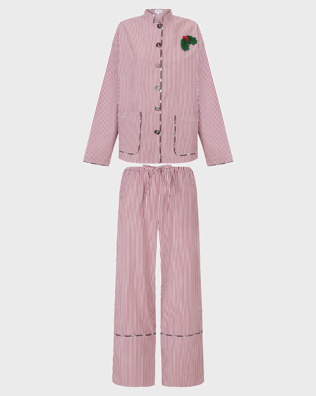Detalles que marcan la diferencia: El Pijama Arthur Xmas Wreath esta compuesto por un pantalón de pernera recta y una camisa de manga larga y corte recto que se caracteriza por nuestro ya emblemático cuello mao. Este pantalón es el más cómodo debido a su cinturilla ajustable pero también el más especial por su corte el en el bajo, el vivo decoratico y el increíble tejido. Por su lado, la parte superior está repleta de detalles y eso es lo que la hace tan refinada. El vivo de tartán a contraste, el acebo bordado en el pecho, nuestros típicos bolsillos, los botones forrados en el mismo tartán y sobre todo el tejido de algodón de rayas rojas.