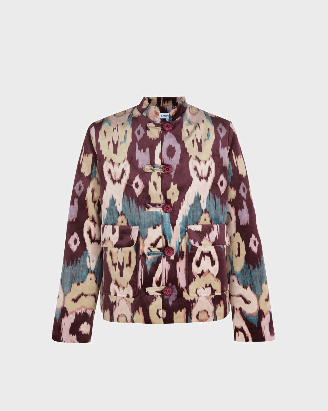 Chaqueta Tang Burgundy Ikat: La elegancia atemporal hecha chaqueta