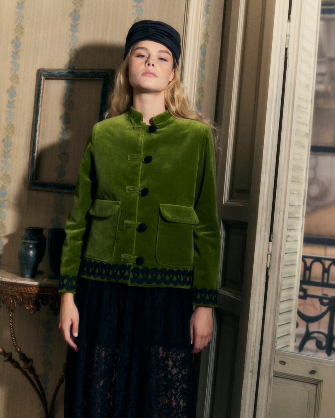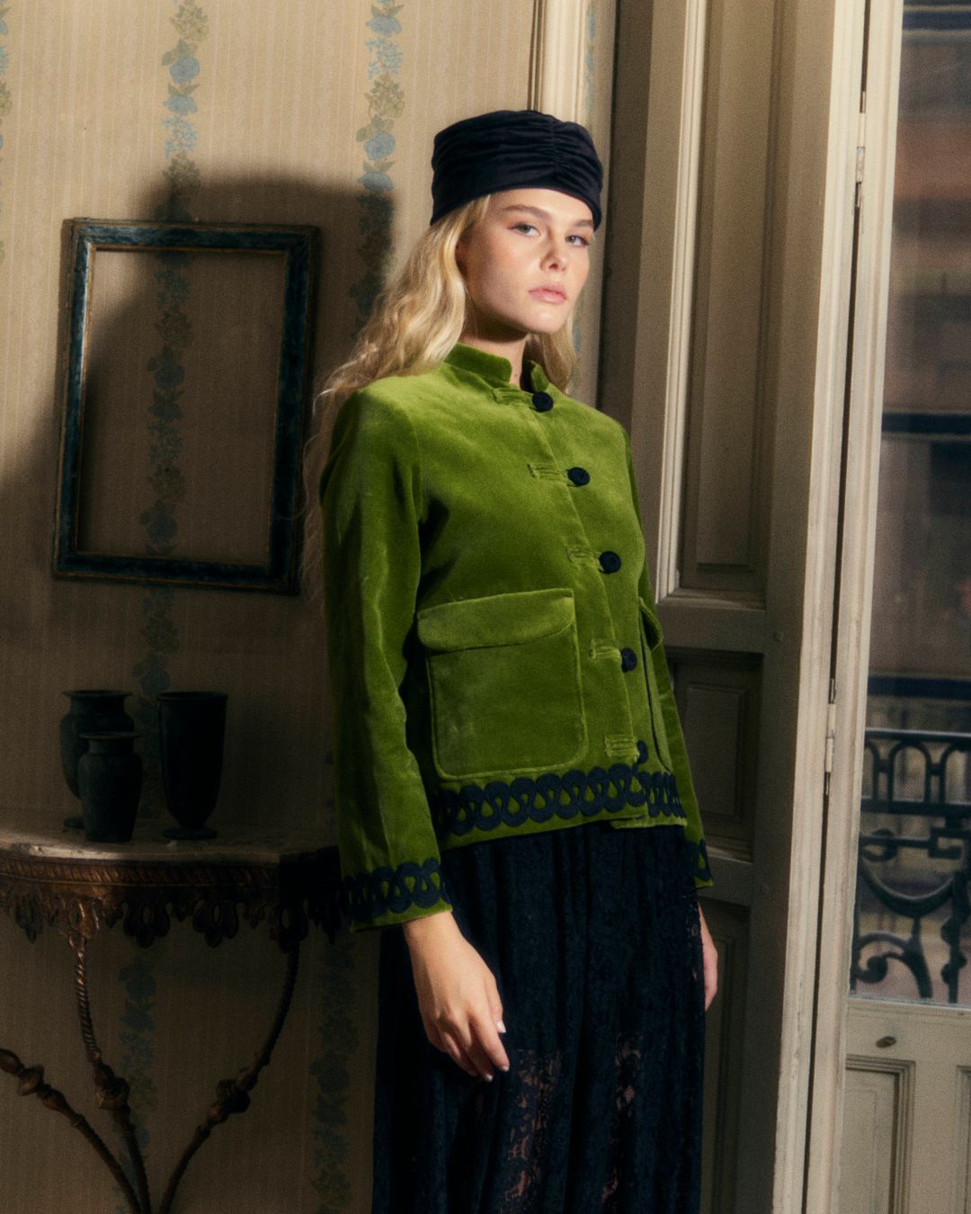 Chaqueta Tang Velveteen Pistachio: La elegancia atemporal hecha chaqueta