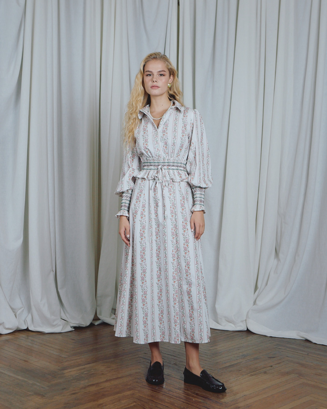 Detalles que marcan la diferencia: Esta prenda midi cuenta con mangas abullonadas terminadas en volante, falda con vuelo, cuello camisero redondeado que sienta bien a todo tipo de morfologías y cintura fruncida mediante lazadas para realzar la figura. Su exquisito diseño cuenta con un fajín de volantes y nido de abeja que convierte el vestido en una prenda única. Su combinación de elegancia y calidad la convierten en una elección única e irrepetible. Confeccionado en un algodón de la mejor calidad, ligero y fluido, este vestido garantiza comodidad y frescura en cada uso. Este estampado tan romántico que simula un bordado, destaca por las cenefas florales en los tonos pasteles más bonitos sobre una base beige. Pero sin ninguna duda, es el nido de abeja que combina verde, rojo y beige, el que da un punto de artesanía a la prenda. Se trata de una combinación de colores que no pasará desapercibida!